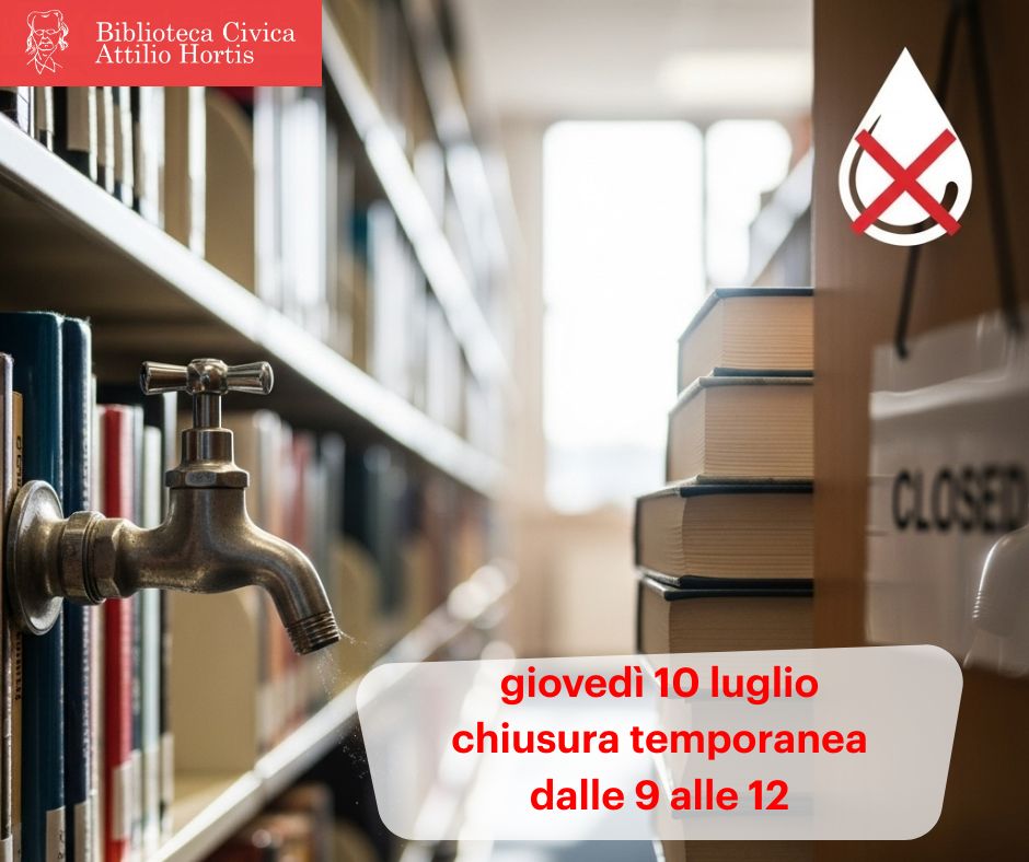 Giovedì 10 luglio Biblioteca Hortis, Archivio diplomatico e Museo petrarchesco chiusi al pubblico dalle 9 alle 12 per temporanea interruzione della fornitura dell’acqua Il Servizio
