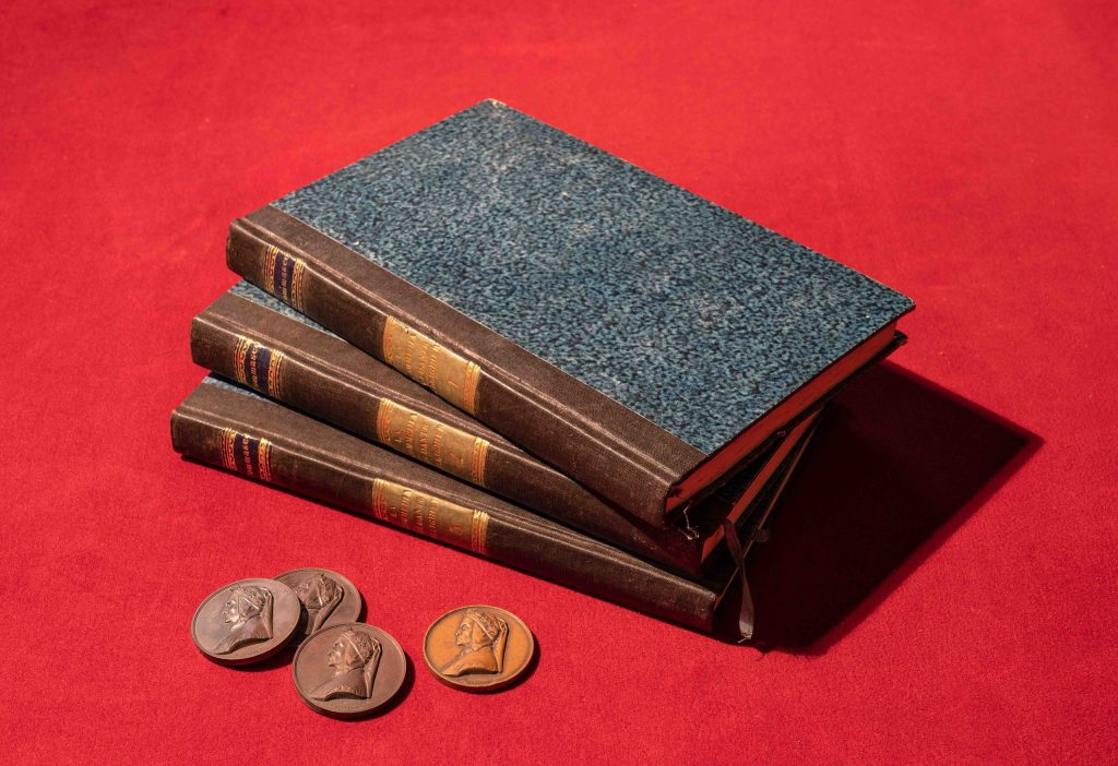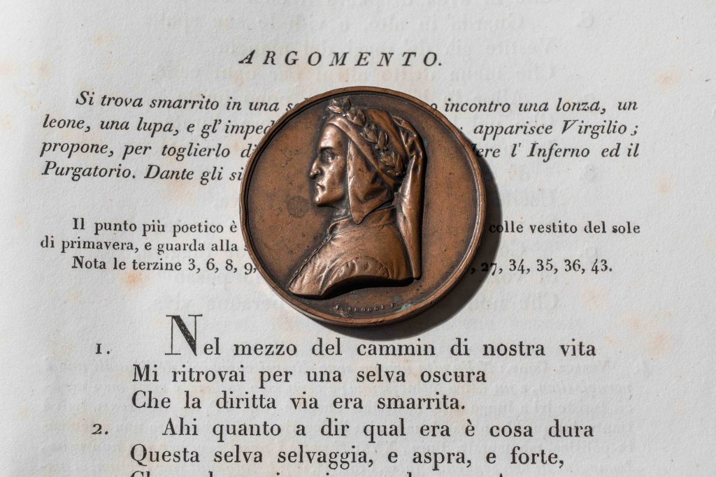 Dai 1.800 volumi che compongono la biblioteca di Revoltella oggi vogliamo presentarvi la prima edizione del commento di Niccolò Tommaseo alla Divina Commedia, stampato nel dicembre 1837 a Venezia in 1.500 copie dalla Società del Gondoliere (luglio 1837-dicembre 1841). Il commento del Tommaseo, pur nella sua sobrietà editoriale, essendo privo di illustrazioni, costituisce un fondamentale punto di riferimento per la filologia dantesca dell’Ottocento. Ad esso Tommaseo si dedicò incessantemente, pubblicando in vita, nel 1854 e nel 1865, ben altre due edizioni ampliate.