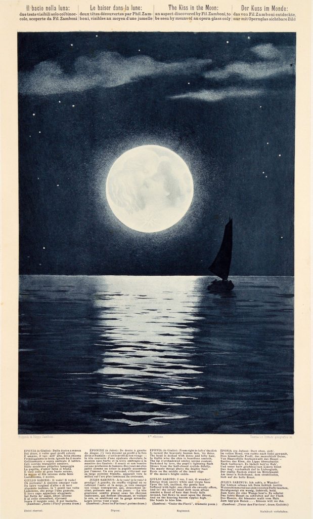 Il metodo “Dante spiegato col binocolo” segue con precisione le coordinate astronomiche dei cieli del Paradiso: ma il tecnologico, anche se irrimediabilmente romantico, Zamboni surroga la potenza visionaria del sommo poeta con lenti oculari e riassume nel disegno fatto realizzare per il suo saggio lo spettacolo pirotecnico dei nastri di luce che ciascuno può ammirare nel Cielo della Luna usando «un binocolo qualunque. Accomodatelo alla vista per discernere le macchie lunari.
