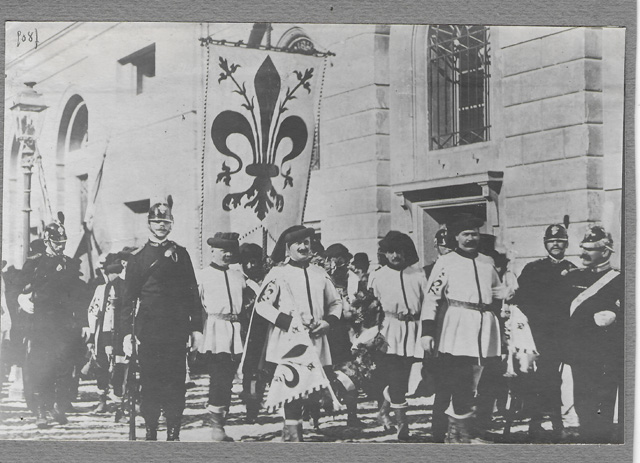 A Ravenna, Padovan fotografa anche i valletti municipali fiorentini in divisa bianco rossa recanti il gonfalone, giunti da Firenze con il sindaco.