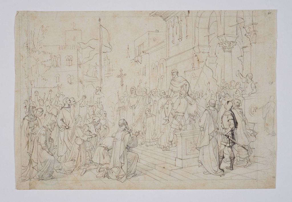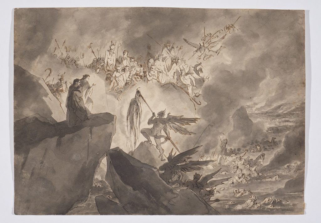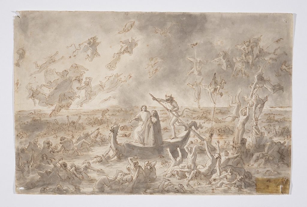 Continuando ad esplorare la raccolta di disegni che il pittore Giuseppe Lorenzo Gatteri realizzò tra la fine degli anni Quaranta e la metà degli anni Sessanta del XIX secolo, in vista delle celebrazioni per il sesto centenario della nascita di Dante Alighieri, oggi vediamo un po’ più da vicino quali episodi e quali figure nell’ambito dei canti VII, X, XXI e XXXI il pittore triestino decise di interpretare, grazie al suo estro e alla sua fervida inventiva.