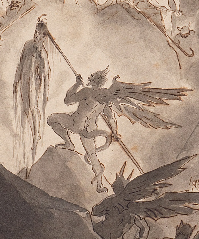 Per il taglio compositivo e per la vibrante illuminazione dell’abisso infernale si rivela davvero imponente la raffigurazione di Gatteri della V bolgia dell’ottavo cerchio dell’Inferno, “mirabilmente oscura”, dove sono puniti i barattieri, torturati e sbeffeggiati dai Malebranche, come Dante definisce i diavoli guardiani di tale bolgia.