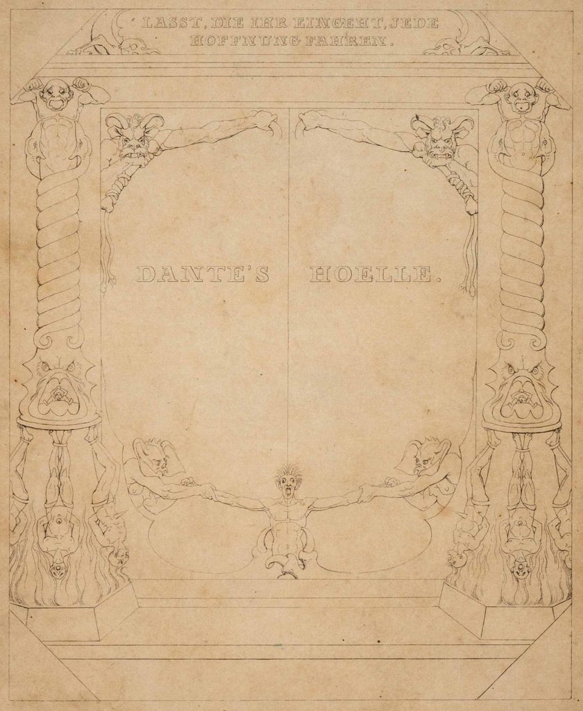 Ma Giovanni Guglielmo non si limita alla lettura dell’edizione italiana. Nello stesso periodo Sartorio legge la versione tedesca della Commedia, realizzata dal principe Giovanni (1801–1873), re di Sassonia dal 1854. In questa copia l’annotazione di lettura autografa è in tedesco “Gelesen in September & October 1840”. L’edizione alemanna riveste un interesse particolare perché è personalmente donata dal traduttore che è solito firmarsi con lo pseudonimo Philaletes (in greco amante della cultura).