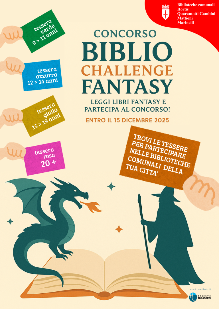 È indetto dalle biblioteche del Comune di Trieste un concorso per promuovere la lettura dei libri di narrativa fantasy in concomitanza con l’evento della mostra